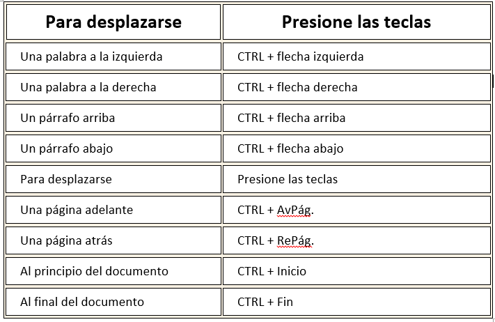 A). Cuales son los movimientos o desplazamientos que se pueden realizar a través de un texto en microsoft word con mouse y con teclado.
