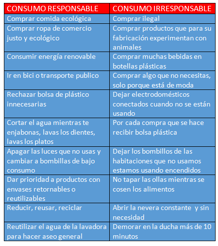 - REALIZA UN PARALELO DE CONSUMO RESPONSABLE Y CONSUMO IRRESPONSABLE.