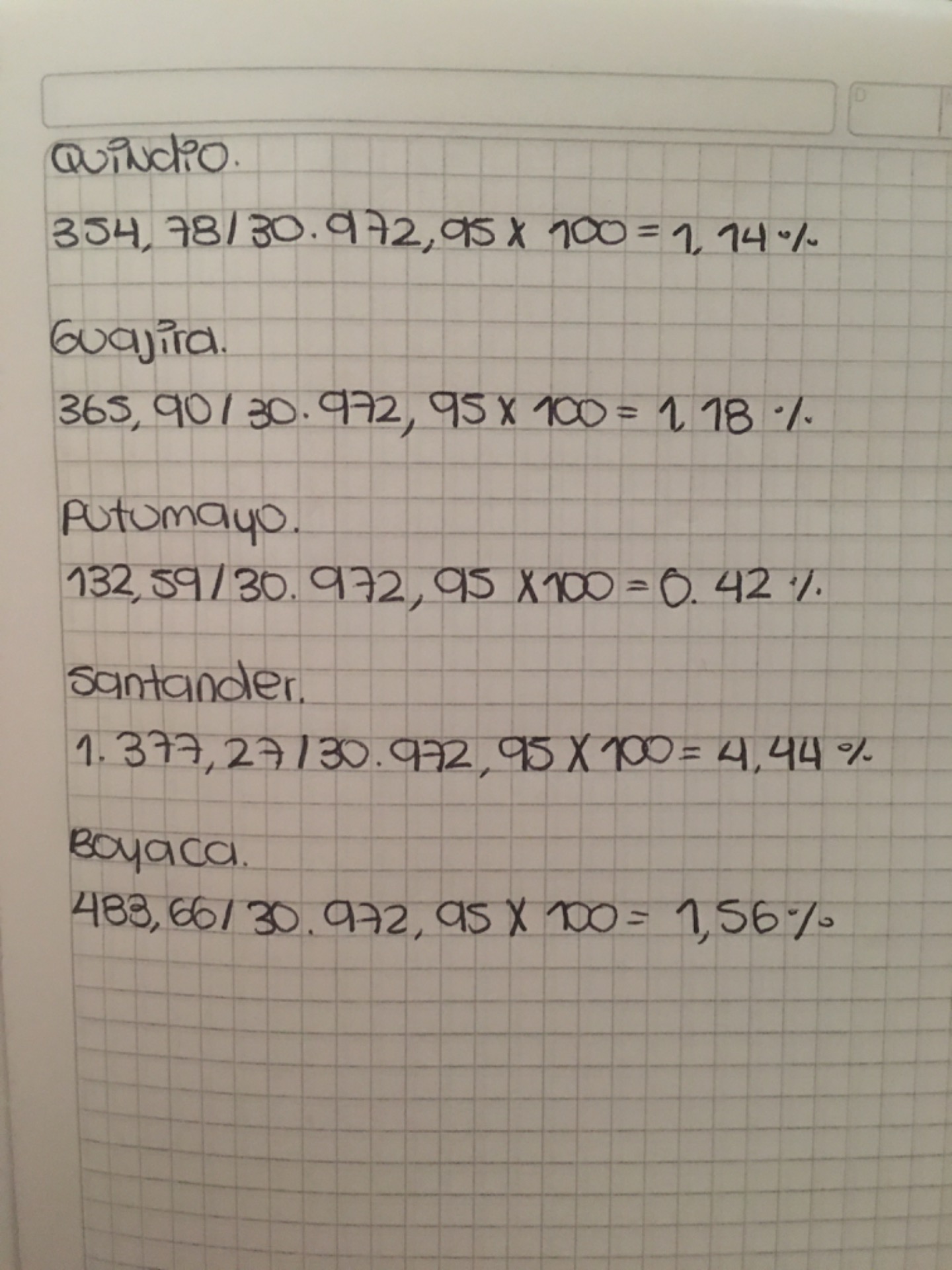 a. Quindío b. Guajira c. Putumayo d. Santander e. Boyacá