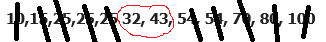e. 10, 15, 25, 25, 25, 32, 43, 54, 54, 70, 80, 100