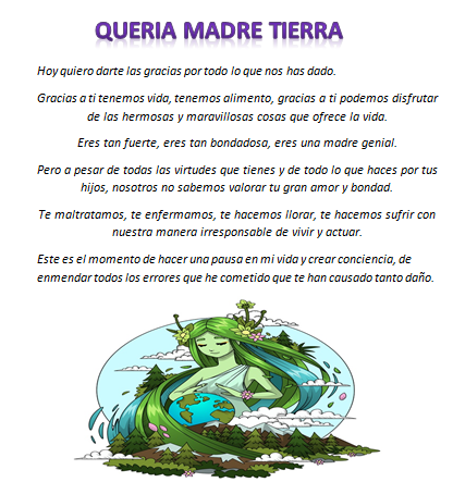 Desde esta carta, y si puedes y deseas busca unos videos sobre "la naturaleza nos habla", los cuales te sirven de insumo, para realizar una carta de gratitud y disculpas a la tierra, por convertirla en un instrumento y no considerarla un ser vivo, como una madre que nos sostiene, además realiza un dibujo planteando, cómo ves en un futuro no muy lejano al planeta tierra y explícalo.