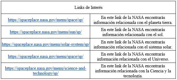 b. El título o tema a elegir debe estar relacionado con "Viajemos por el universo sin salir de casa", los links de interés de la página de la NASA te pueden ayudar a establecer el tema a trabajar. El tema debe ser realizado en la página de una hoja de block sin rayas o en una página del cuaderno de investigación. En lo posible debe ir decorado.